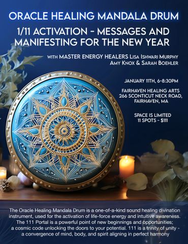 "A few weeks ago, I was given the opportunity to participate in an Oracle Healing Mandala Drum/Table (O.H.M.Drum) session. Having exposure to many healing modalities over many years this would be a completely new experience for me. This whole session was done in a lighted space so one was able to see clearly what was transpiring. Later in the session we were invited to actual place our hands on the table, feeling the vibrations coming through the table resulting in the table spinning and gyrating throughout the room. Lisa was asking the table questions and the table responded in kind. Throughout the evening numerous Spiritual beings were contacted. As the session progressed both Sara and Amy also received information from the table. Sara imparted very interesting information regarding herbal remedies to help individuals participating, with current issues, while Amy gave more personal general messages. During my hands-on portion of the evening I felt a subtle energy charge flowing thru me and afterwards a sense of peacefulness. We were informed that the effects of this high energy experience would be felt for up the 72 hours. I slept very well that night and have continues to for weeks. Unfortunately, I took a fall on ice less then 24 hours later. It is remarkable that I didn’t break any bones suffering only bone bruising and muscle strain. I have been told by an Osteopath that the fact I didn’t break anything is really a miracle. In addition, I have been experiencing high B/ P for almost a year and have been trying to avoid pharmaceuticals. Since the session the BP has been check a couple time by medical professionals and is in the 120’s /80’s. The only thing different is my evening with the O.H.M.Drum. The movement of the table clearly shows that consciousness moves not only formlessly but in form. In general, I would say that after my evening spent with the Drum I feel more at peace yet more energetic which is a blessing during these trying times." - Lyndy